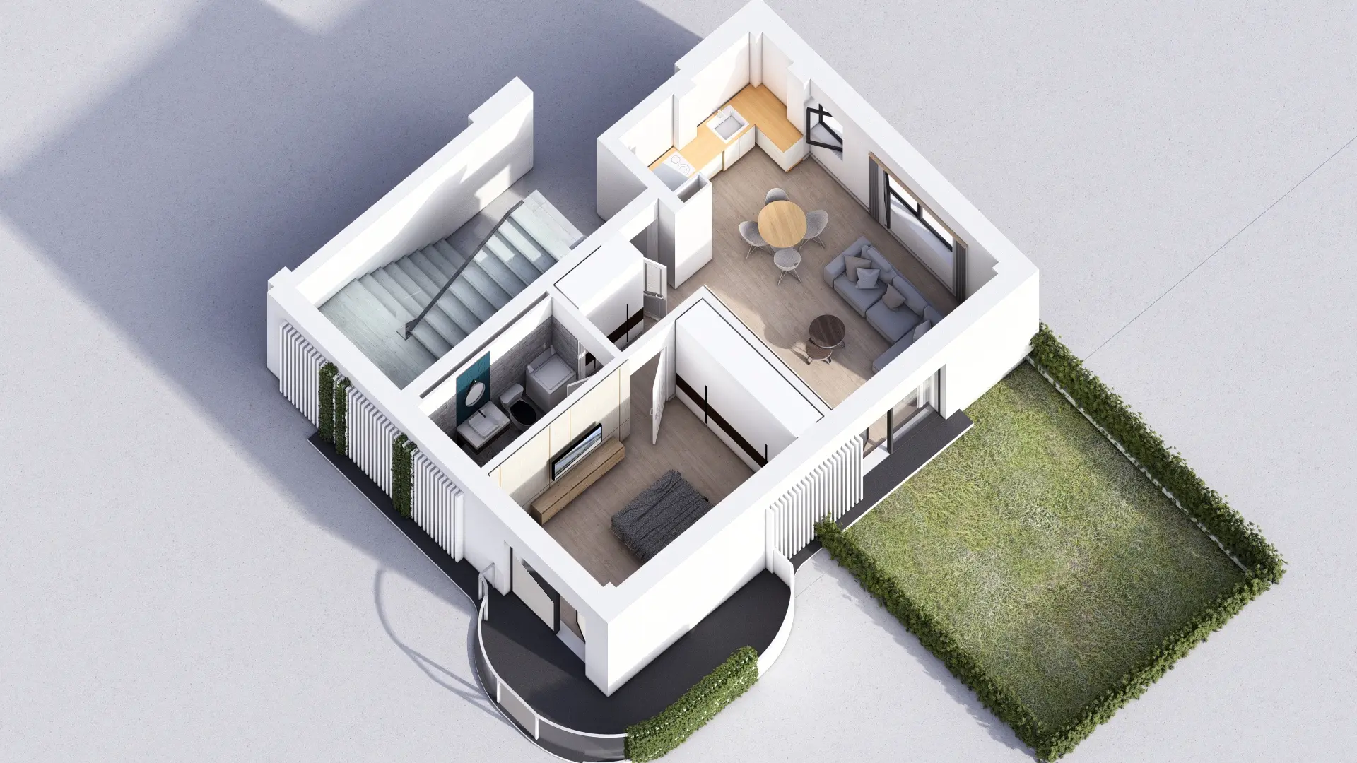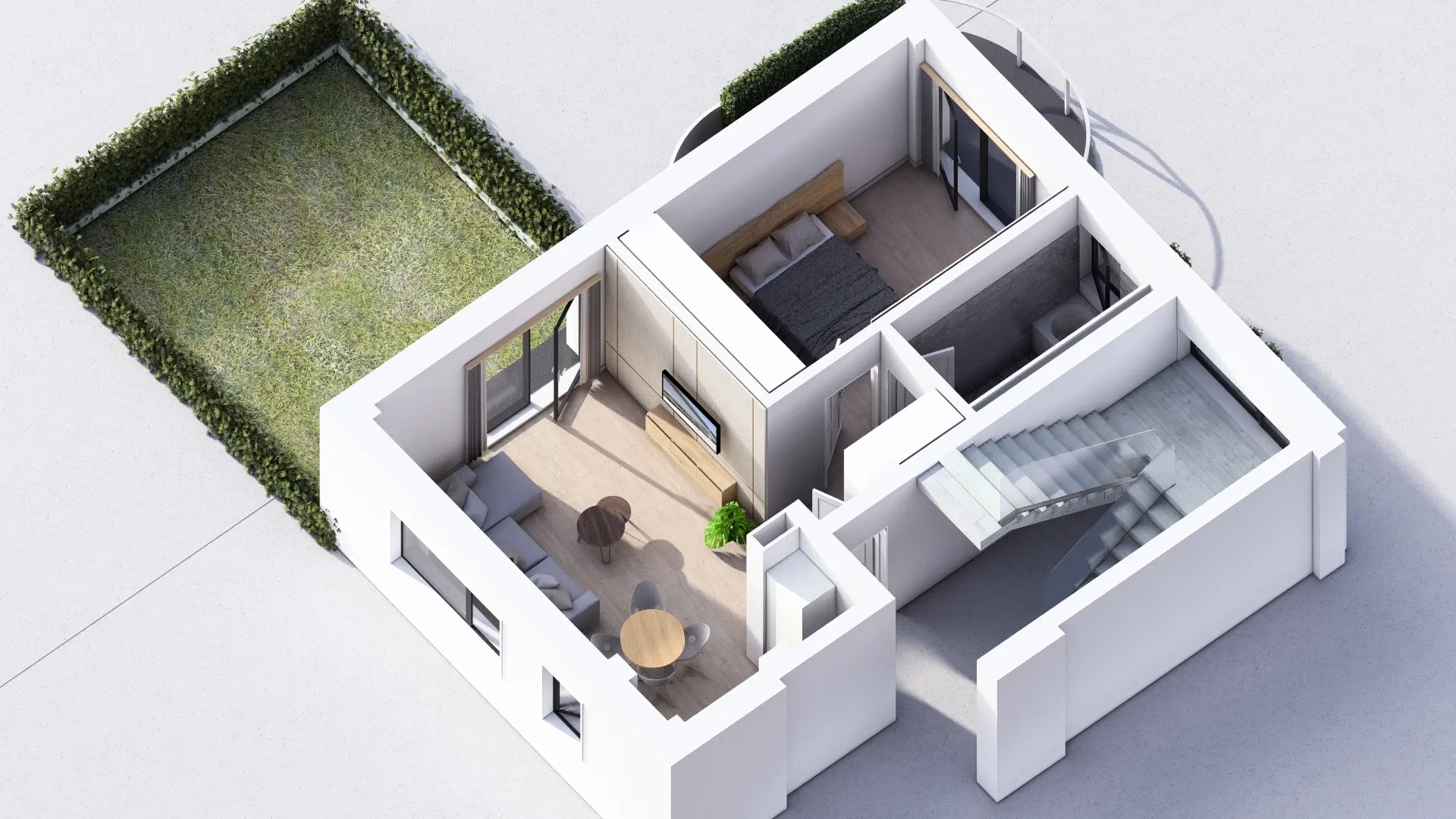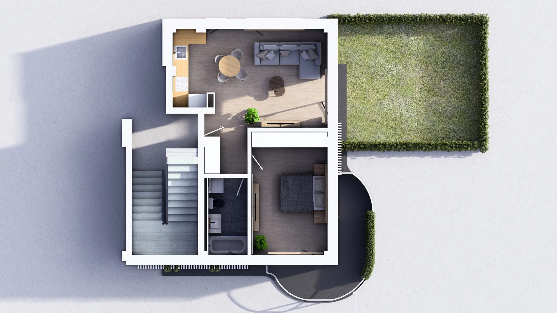 Baie luminoasă, ventilată natural și complet echipată — cadă sau duș la alegere, lavoar, vas WC cu rezervor încastrat și duș igienic. Fiecare client poate opta pentru varianta standard sau pentru pachetul premium al băii (cost suplimentar).
